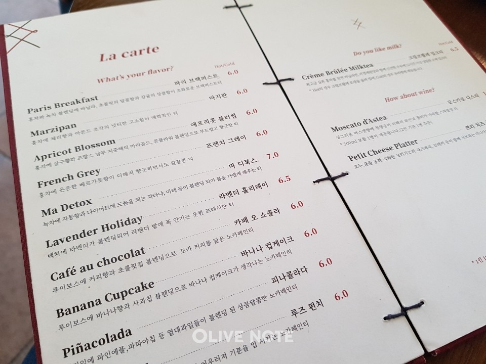메뉴판이에요. 이곳은 티(Tea)카페이기 때문에 커피는 없어요. 커피를 드시려면 이곳에 가시면 안 됩니다.^^
