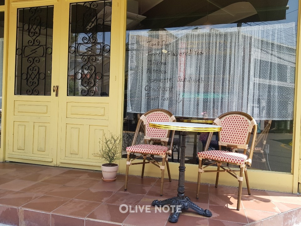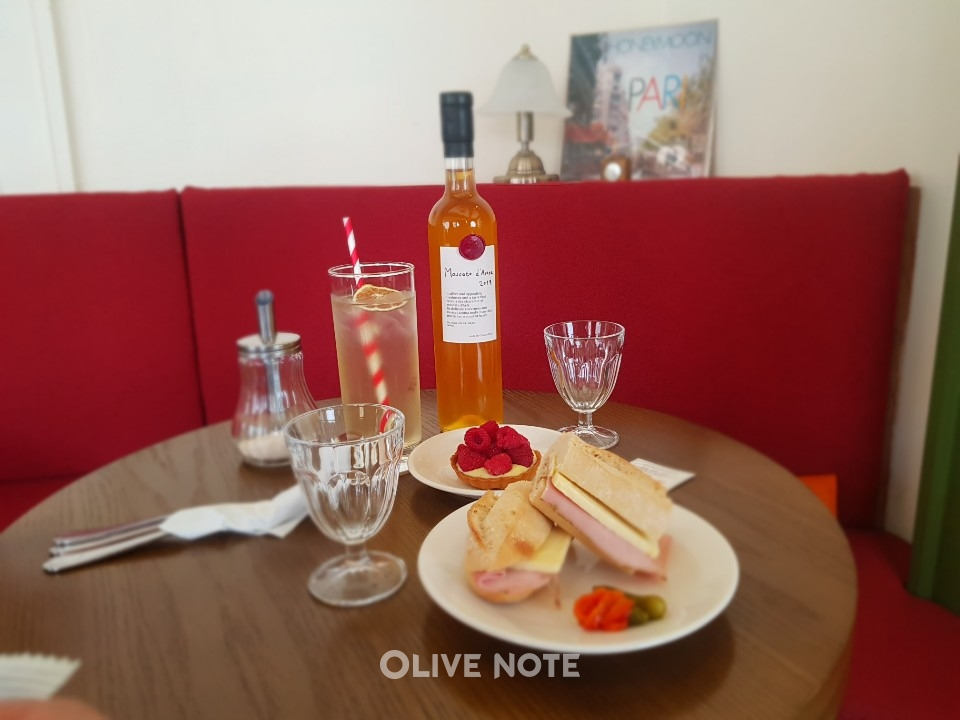 반대쪽에서도 한 번 찍어봤어요. 조금 더 유럽 분위기가 나나요? 음식 평가를 하자면 잠봉버터는 생각보다 훨씬 괜찮았어요. 짜지도 느끼하지도 않은 담백한 맛이라서 아이도 잘 먹었어요. 특히 바게트 빵이 예술이었어요. 라즈베리 타르트는 평범했던 것 같아요. 라즈베리가 싱싱해서 다른 곳보다 상큼함이 더 많이 느껴진 정도?