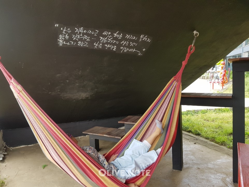 계단 아래쪽으로 해먹도 있어요. 아이는 잠깐 해먹 위에 있었더니 잠이 온다고 하더군요. 엄마 아빠가 교대로 낮잠을 청해보는 것도..ㅎ