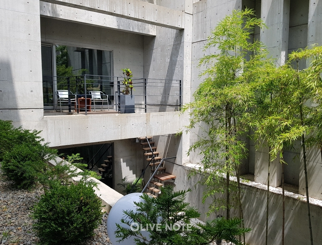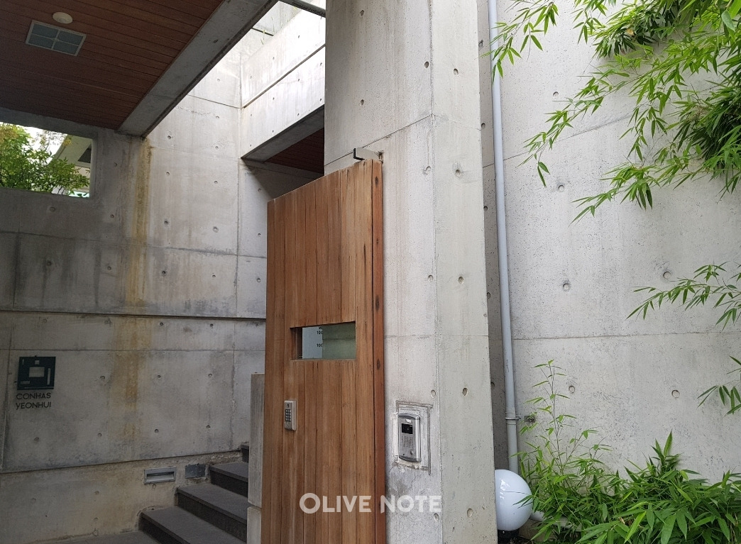 연희동 주택가 골목을 따라 가다 보면 으리으리한 회색 콘크리트 건물이 보여요. 규모가 큰 데다 콘크리트라는 재질이 주는 느낌 때문인지 첫인상은 좀 차가운데요. 건물 안으로 들어갈수록 식물과 조명 등을 이용해 따뜻함이 묻어나도록 인테리어했더라고요.