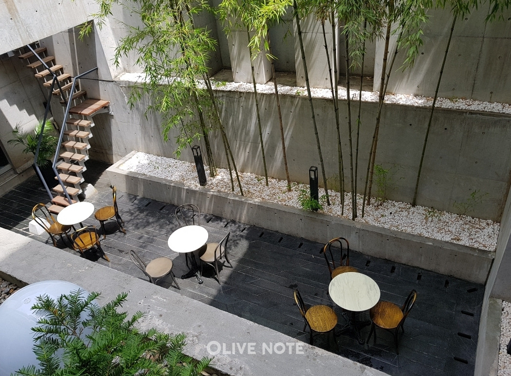 아, 딱 적당한 크기의 정원 덕분에 아이랑 같이 온 엄마 아빠도 좀 편하게 커피를 마시더라고요.^^ 다만 야외 자리는 해가 머리 꼭대기에 올라가는 시간이 되니 많이 더웠어요. (해가 뜨거울 때를 제외한 오전과 밤에는 분위기가 정말 좋을 것 같아요)