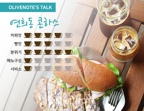 바로 '연희동 콘하스'입니다. (합정점에 이어 두 번째로 문을 연 곳이라고 해요. 참고로 경의선 숲길에 있던 서교점은 문을 닫았다고 하니 예전 글들 보고 그리로 가시면 아니 됩니다~) 연희동은 젊은이들의 핫플레이스인 홍대 입구역 근처에서 살짝 거리가 있죠. 그래서 차분함이 있어요. 특히 멋들어진 주택가 한가운데 있는 콘하스는 그 분위기가 매우 색달라요.