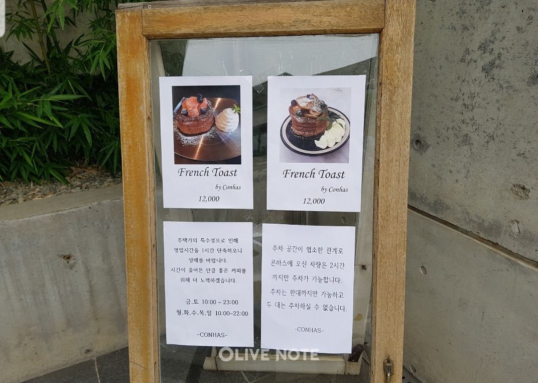 아쉬운 점이 더 있다면 주차 공간이 매우 협소(주차장 2대, 카페 앞 2대 정도)하다는 것과 직원들이 썩 친절하지는 않았다는 거예요. 제가 요즘 너무 친절한 직원이 많은 카페에 가서 그런 거일 수도 있겠지만요!