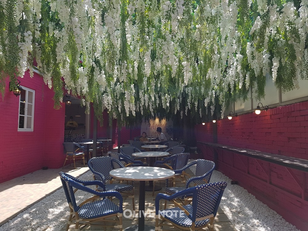 특히 머리 위에 하늘거리는 등나무! 최근 성수동 성수연방이 이 인테리어로 상당한 인기를 끌고 있는데요. 저는 개인적으로 여기가 더 예쁜 것 같아요.