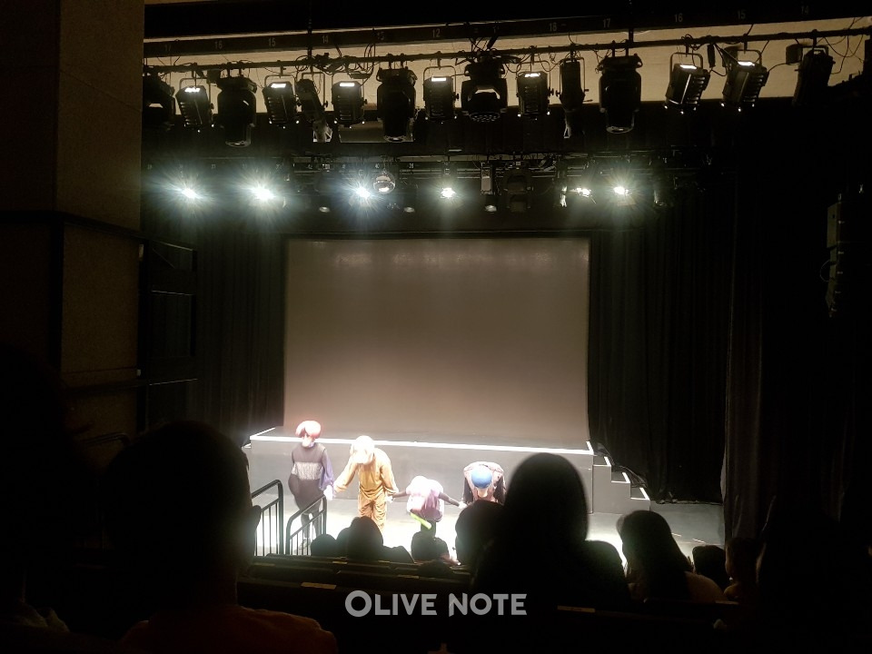 연극을 마친 배우들이 무대인사를 하고 있어요. 공연 중에는 사진을 찍을 수 없어 이게 최선이네요. ㅎㅎ