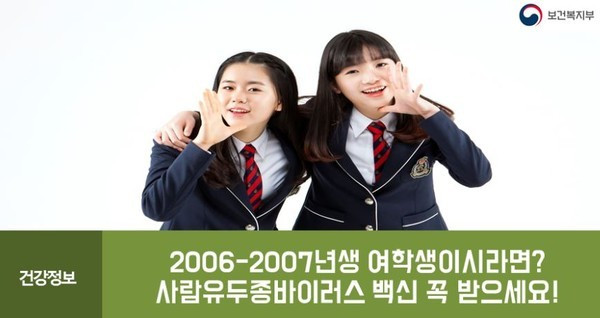 자녀가 2006~2007년에 태어났다면 올해 무료 접종 지원 대상으로 연말까지 예방접종을 완료해야 합니다. (☞관련 기사 2006년 태어난 여학생, 올해 안에 'HPV무료접종' 꼭 받으세요)