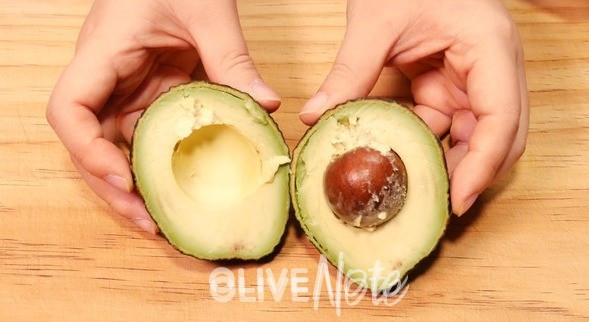 아보카도는 상온에서 2~3일 숙성해 보랏빛 돌고 살짝 눌렀을 때 들어가면 익은 거예요. 가운데 칼집을 넣어 껍질을 벗기고 썰어주세요. 명란젓은 알만 살살 긁어내고 막은 버립니다.