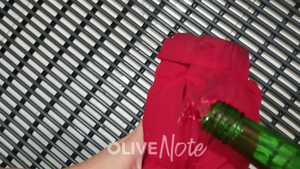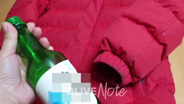 이럴 땐 '소주' 하나로 말끔히 해결할 수 있어요. 세탁 방법도 너무 간단한데요. 패딩의 얼룩진 부위에 소주를 묻힌 뒤 마른 수건으로 문질러주면 끝!
