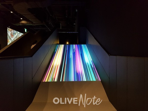 4위는 '종이가 살아나는 공간(Fly High)'입니다. 만들기 공간인데요. 특히 아이가 즐거워 한 건 비행기를 접어서 화면을 향해 날려 벽에 맞으면 하늘을 나는 공룡이 '짠~'하고 생기는 거였어요. 처음엔 한 마리 밖에 없던 공룡이 화면을 뒤덮을 때까지 종이비행기를 날리더라고요. ㅎㅎ