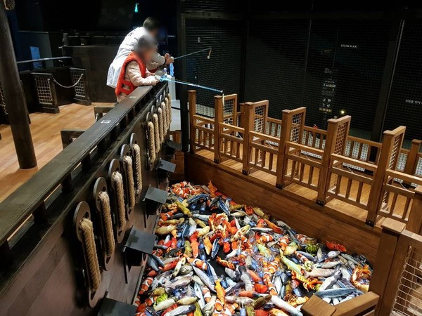 직접 배에 올라 구명조끼를 입고 바다낚시를 하는 '온 가족이 즐기는 특별한 낚시(Aye Captain)'입니다. 여기서 주의할 점은 물고기가 아닌 플라스틱 병을 낚는 걸 목표로 해야 하는 거예요. 그러면서 지구의 소중함을 느끼는 거죠.