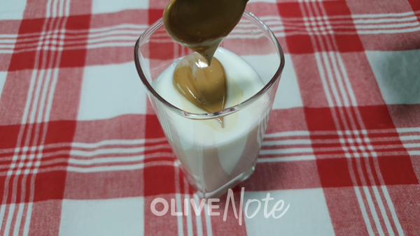 취향에 따라 따뜻한 우유 혹은 찬 우유를 준비해주세요. 달고나 거품이 상당히 달기 때문에 달고나거품과 우유의 비율은 1:3 정도를 추천합니다.