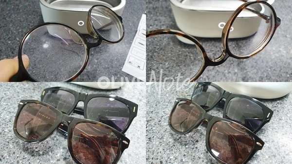 또 안경점에서 사용하는 공업용 초음파 세척기만큼 강력하진 못하다는 게 사용자들의 중론입니다. 그야말로 딱 안경, 선글라스 닦는 용도로 적당하다는 건데요. 가정용 초음파 세척기의 출력이 약해서인지 어떨 땐 두 세 번은 돌려야 마음에 쏙 들게 깨끗해지는 경우도 있었어요.