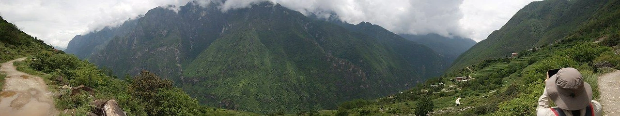 상호도협을 다녀왔기에 중호도협에 갈까말까 잠깐 고민했지만, 마침 티나객잔 주인이 차로 입구쪽에 데려다준다고 하니 몇몇 트레커들과 함께 냉큼 길을 나섰다. 차는 몇분 거리에 우릴 떨궈주었고, 우린 절벽 끝까지 내려가 중호도협을 보고 다시 올라와야 했다. 뭐, 지금껏 좀 편했으니, 해보지 뭐.
