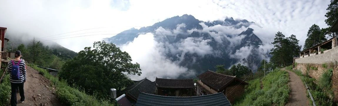 차마고도는 호도협이라는 이름에 걸맞게 각도가 가파른 협곡 중간 쯤의 절벽 길인데, 아이러니하게도 오르막 하나 없어 걷기 편하다. 절벽길이라 옆이 탁 트인 풍광은 속이 다 시원하다. 좁은 협곡이라 맞은편에 산이 병풍처럼 이어져있다.(식상한 표현이지만 더 적절한 표현을 찾을수가 없다.) 마침 우기였던 차마고도엔 늘 구름이 따라다녔는데, 오히려 다이나믹한 구름의 움직임으로 길이 심심하지 않았다. 건너편 산에서는 소림사 무술 고수가 훈련을 하고 있을 것 같은 신비로운 풍경. 엇, 저 구름 뒤로 이연걸이 움직이는 게 보이는 것 같은데에?!!