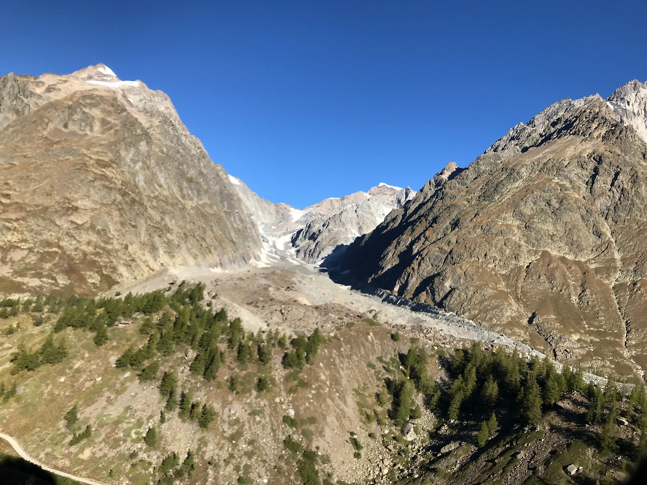 오르막을 올라 능선을 걸어간다. 오르막도 내리막도 아닌 능선길은 풍경을 오롯이 즐기라는 몽블랑이 주는 선물같은 것이다. 설산을 향한 매우 올가닉(?)한 나무 망원경들을 포함한 트레커들을 위한 어설픈 설치물들도 왠지 귀여웠다. ‘뭘 좋아할지 몰라서 이것저것 준비해봤어’ 그런 느낌?