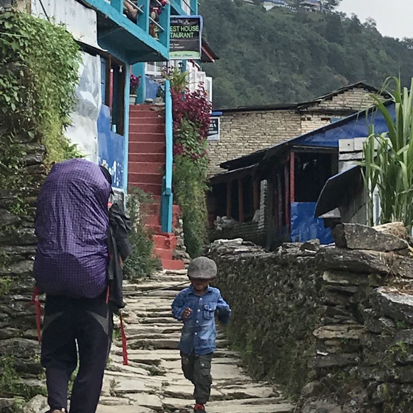 꼬박 두시간짜리 계단이라고 한다. 그저 하나하나 올라야 할 뿐이다. 몇년전 스리랑카 아담스픽 일출을 보기위해 올랐던 계단이 생각난다. 거의 4시간을 기어올라갔었던... 그때와 비교하면 나은 편이라며 묵묵히 올라간다. 커다란 (우리) 짐을 맨 디펜드라와 포터 비스무허리도 오르막에선 발걸음이 느려지는 걸 보니 괜히 미안해진다.