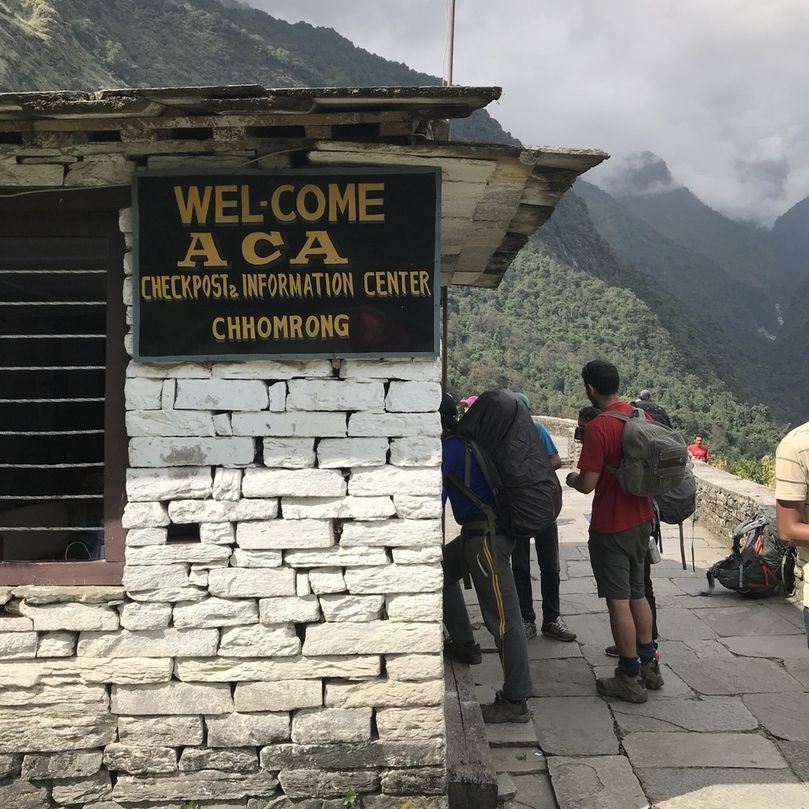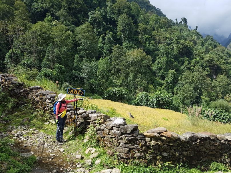 이제 본격적으로 ABC에 가까워진 모양이다. 체크포인트도 있고 표지판도 보인다. ABC에서 하산할때 다시 촘롱으로 와서 다른 길로 간다고 한다. 촘롱은 이 구역 교통의 요지다.