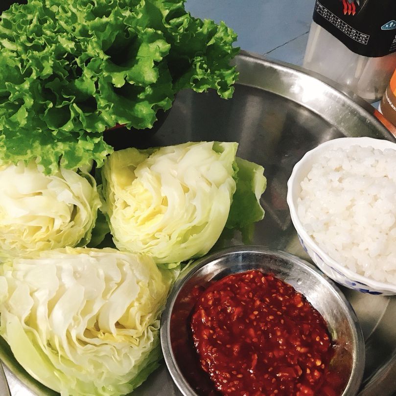 거기에 삶은 양배추 쌈밥이라니...! 낮에 촘롱 김치찌개도 밥이 날려서 못먹겠다 하셨던 과장님께서도 엄지척. 이 분들을 붙잡은 보람이 느껴지는 순간이다.