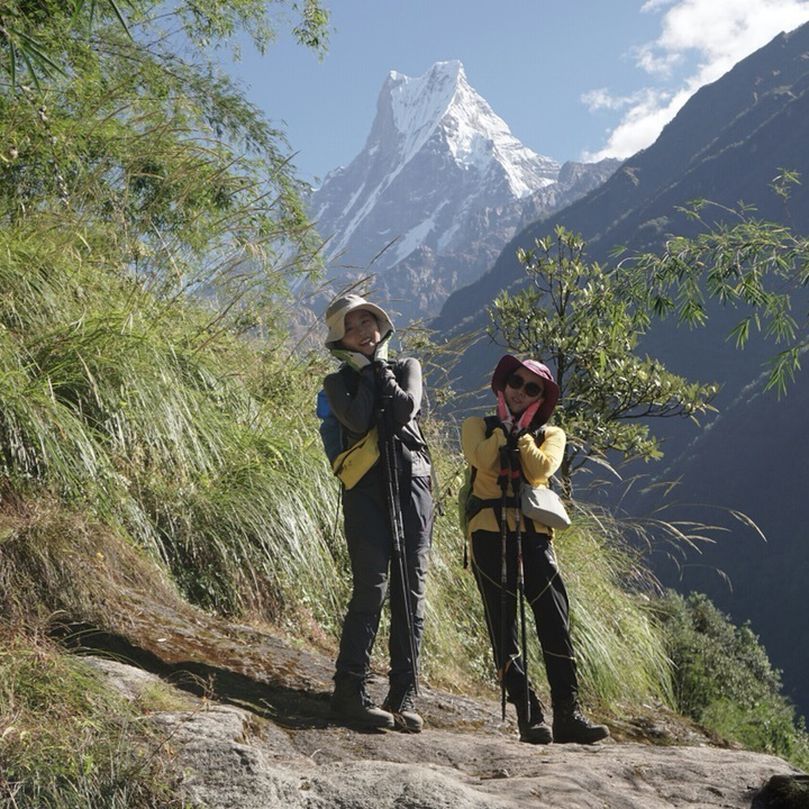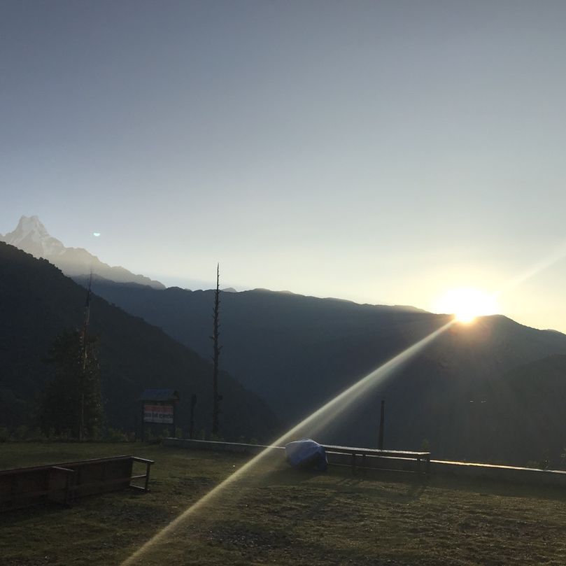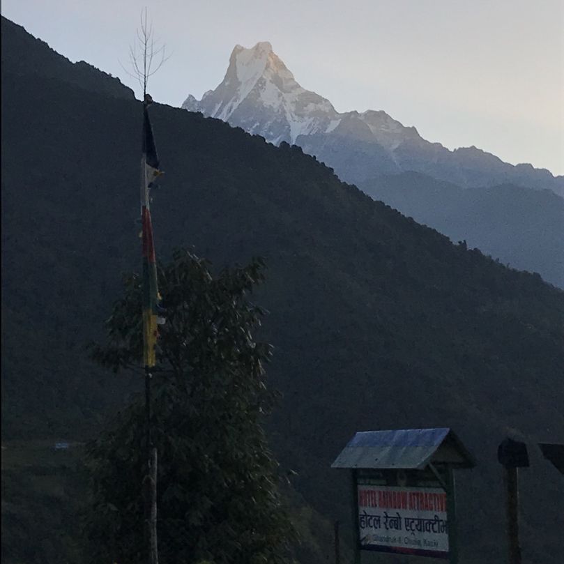 오늘은 숙소에서 일출을 보았다. 숙소의 마당이 마차푸차레가 딱 보이는 명당이었다. 끝이 두개로 갈라진 산꼭대기 때문에 '물고기 꼬리(Fish's Tail)'라는 이름이 붙여진 '마차푸차레'는 그 독특하고 멋진 모습이 유독 인상적이다.
