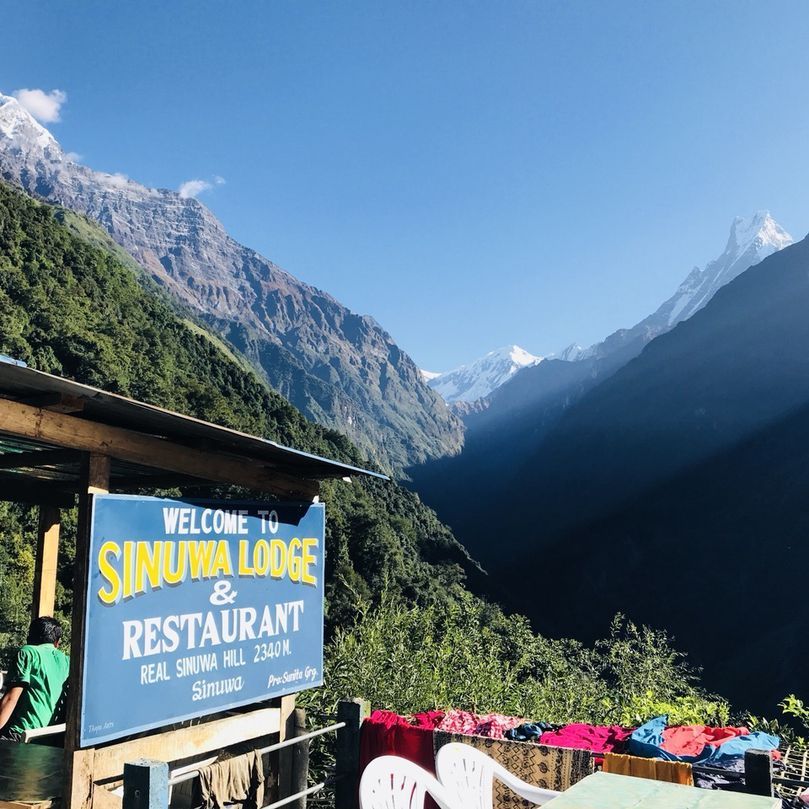 사실 어제 시누와에서 방을 구하기 어려웠던 이유는 한국 단체 트레커팀 때문이었다. 유명한 해X여행사의 단체팀이었는데, 20명 정도는 되는 것 같았다. 시끄러울까 좀 걱정을 했지만 다행히 그들을 위한 다이닝룸이 따로 있었다. 신기하게도 쿠커가 동행하고 직접 한식으로 밥을 해먹으며 이동한다고 한다. 그들의 방문앞에 엄청 큰 빨간 카고백이 여러개 놓여져 있었는데 그런가보다 했다.
