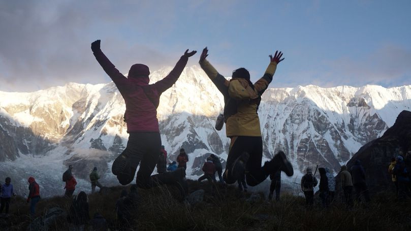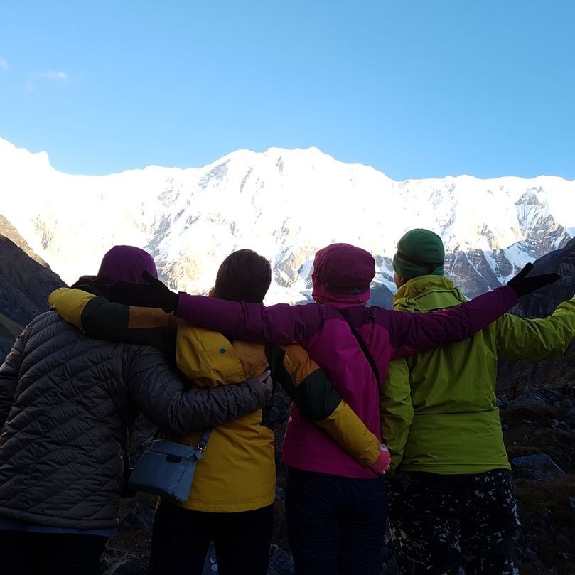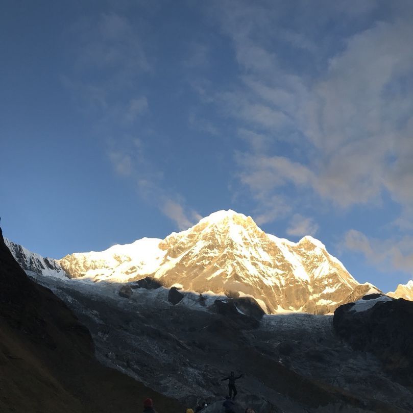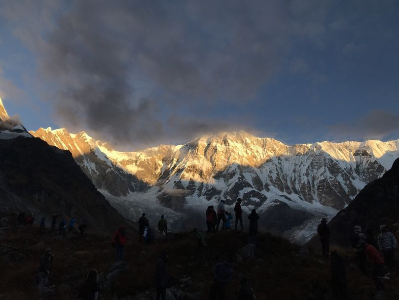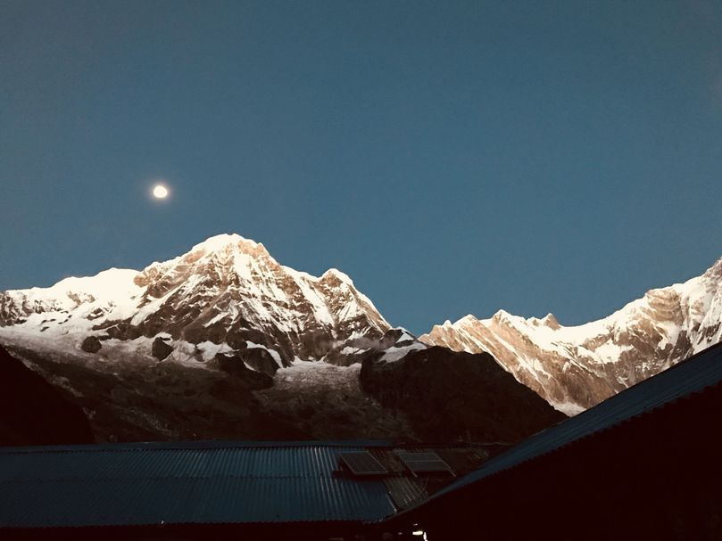 산은 귀엽다는 듯 우릴 보고 있다. 슬슬 하늘이 다 밝았고, 안나푸르나 남봉 끝에서부터 붉은 빛이 내려오기 시작한다.