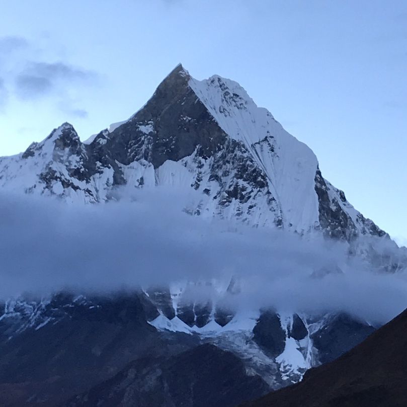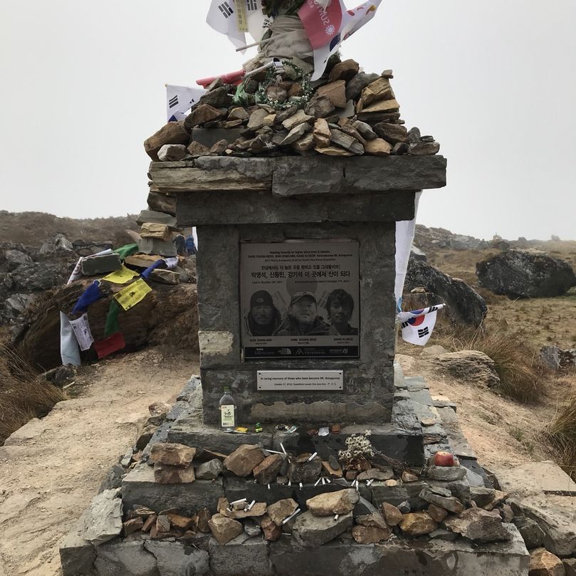 늦은 점심을 허겁지겁 먹고 나서야 주변이 보인다. 살짝살짝 구름 사이로 설산이 보여 기대감을 높인다. 롯지의 뒷편으로는 박영석대장을 포함한, 이곳에서 산이 되어버린 사람들을 기리는 비석들이 있다. 목숨을 걸고 설산을 오르는 사람들을 여전히 이해하긴 어렵지만, 그들의 흔적이 눈앞에 실존하고 있다. 나도 여기까지 온 나를 이해하기 어려운 것처럼, 이들도 무언가에 이끌리듯 온 건 아닐까? 단지 ‘히말라야’이기 때문에.