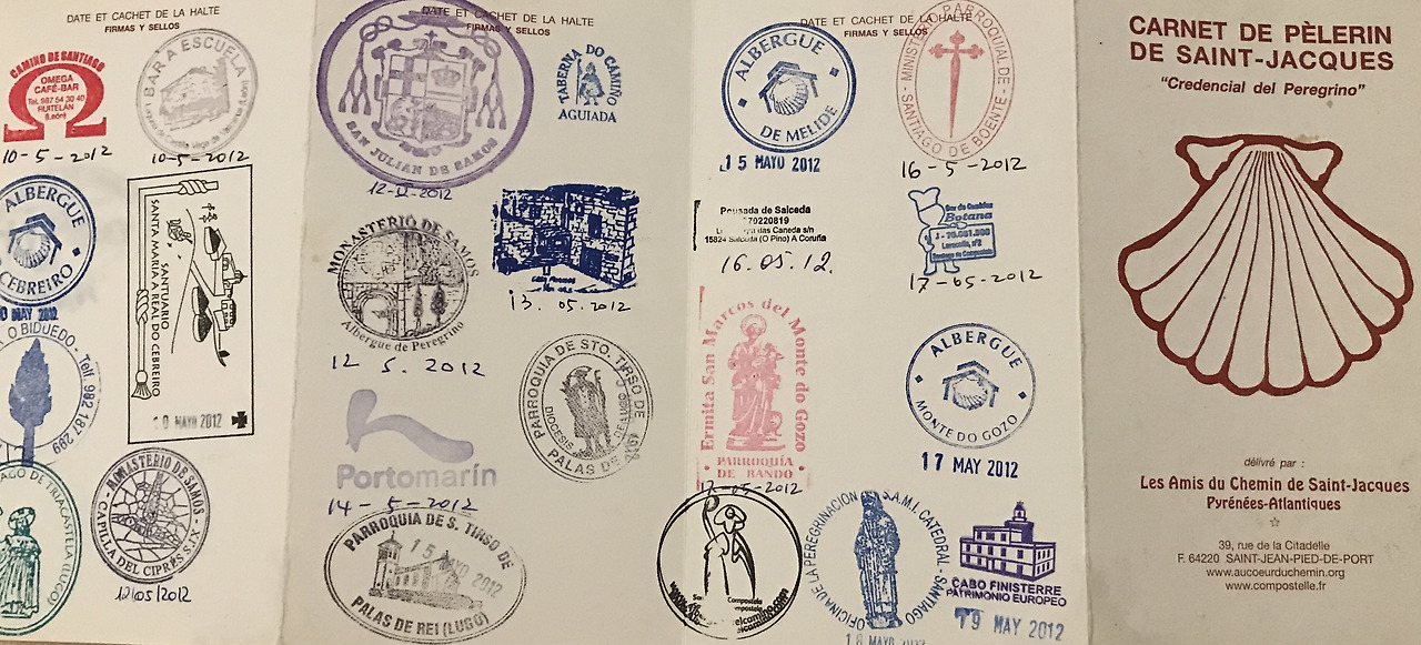 1,000년이 넘은 순례길이라더니, 중세시대 언제쯤에 멈춰진 듯한 성곽 마을에는 순례자들을 위한 트레킹 물품, 관광기념품 등을 파는 가게들이 있어 꽤 리얼한 테마파크에 온 느낌이 들었다. 마치 시간여행하듯 빨려 들어간 생장 성 올드타운의 좁은 골목 39번지에 자리잡고 있는 순례자 사무실. 직원에게 2유로를 내면 내어주는 순례자의 여권인 ‘크레덴시알’을 받고, 순례자의 상징인 조개껍데기 하나를 골라내는 간단한 절차를 거쳐, 일개 관광객이었던 나는 순례자(Pelegrino) 신분이 되었다.