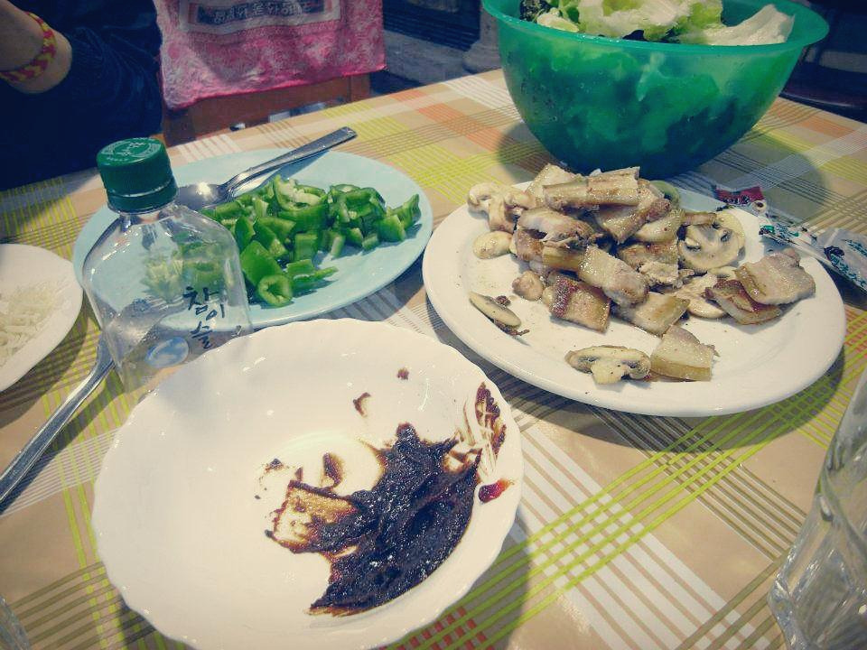 어느 하루는, 거의 일주일간 지나온 알베르게들이 음식 해먹기가 시원찮았는데, 그 날의 알베르게는 요리하고 식사할 수 있는 공간이 넓고 조리도구도 잘 갖춰져 있었으며, 마을에 슈퍼마켓도 컸다. 이른 저녁부터 슬금슬금 순례자들이 부엌으로 하나둘 모이더니 세계 요리 대회가 펼쳐졌다. 이런 곳을 기다린 것이 우리만이 아닌 모양이었다. 한국팀의 삼겹살, 프랑스팀의 연어스테이크, 이탈리아팀의 크림리조또... 각국 대표 요리의 맛도 보고, 와인과 소주를 건배하면서 파티같은 저녁식사를 했다.