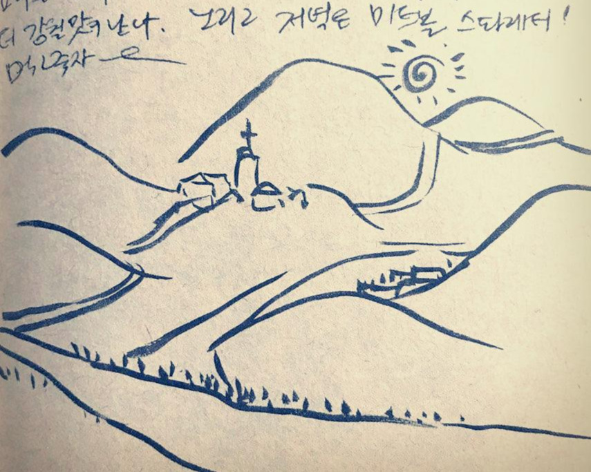 당시 스마트폰이 없어서 저녁 자유시간에 할일이라곤 일기장을 끄적거리는 것뿐이었다. 그날의 컨디션 상태에 따라 얼기설기 썼을 일기를 보며(못 알아보는 글씨도 많다!) 이게 나인가? 싶을 정도로 새삼스럽다. 남의 일기장을 훔쳐보는 듯한 느낌이 들다가도, 읽어 내려갈수록 기억이 스멀스멀 떠오르는 것도 신기하다. SNS로 남긴 여행의 기록과는 확실히 다른 감성이다. 지금 와서 보니 오직 걸어서 가는 여행과 꽤 어울리는 기록법이었구나 싶다.