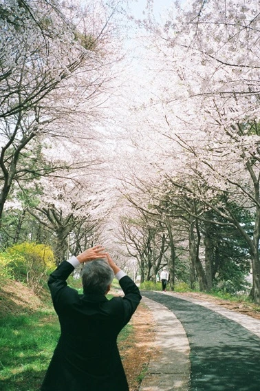 내가 벚꽃 사진을 찍고 있자 아빠도 벚꽃과 하늘을 보면서 손으로 가장 좋은 그림의 구도를 보고 계셨다.