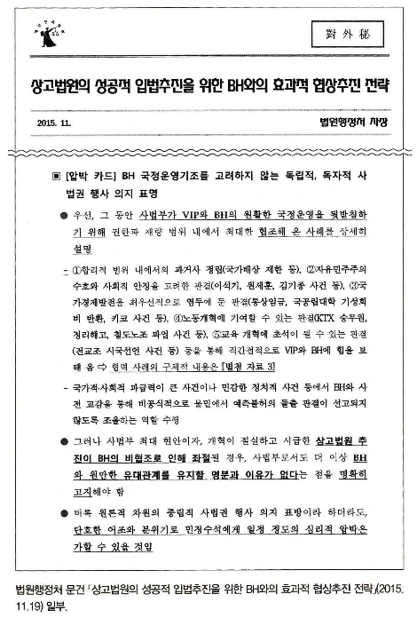 법원행정처 문건 <상고법원의 성공적 입법 추진을 위한 BH와의 효과적 협상 추진 전략> 중 일부, 책 235쪽