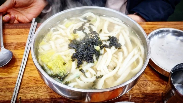 국물을 먼저 한 숟갈 떠서 입안에 넣었다. 시원하고 깔끔한 맛이다. 양념장을 조금 넣고 다시 국물맛을 보았더니 시원하고 깔끔한 맛에 감칠맛이 더해진다. 젓가락으로 휘휘 저어 면발을 떠서 입안에 넣었다. 주방에서 직접 반죽을 하고 홍두깨로 밀고 칼로 썰어내는 면발이라 쫄깃쫄깃하고 양념이 면발에도 적절하게 들어가 있다. 죽인다. 맛있다. 진짜 맛있다.