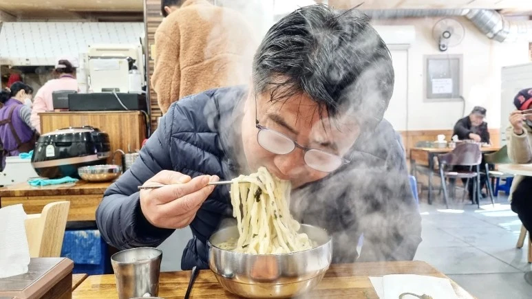 내 차례가 왔다. 식당 안에 사람들이 가득하다. 다들 칼국수 그릇에 얼굴을 처박고 먹느라 정신이 없다. 좁은 공간에 테트리스 퍼즐 맞추듯 식탁을 배치해 놓았다. 덕분에 오른쪽 테이블 아줌마가 면발을 입으로 빨아당기는 소리도 리얼로 들을 수 있다. 왼쪽 아저씨는 지난 주말 동창회에서 양갈비를 먹었다고 친구에게 자랑질 중이다.