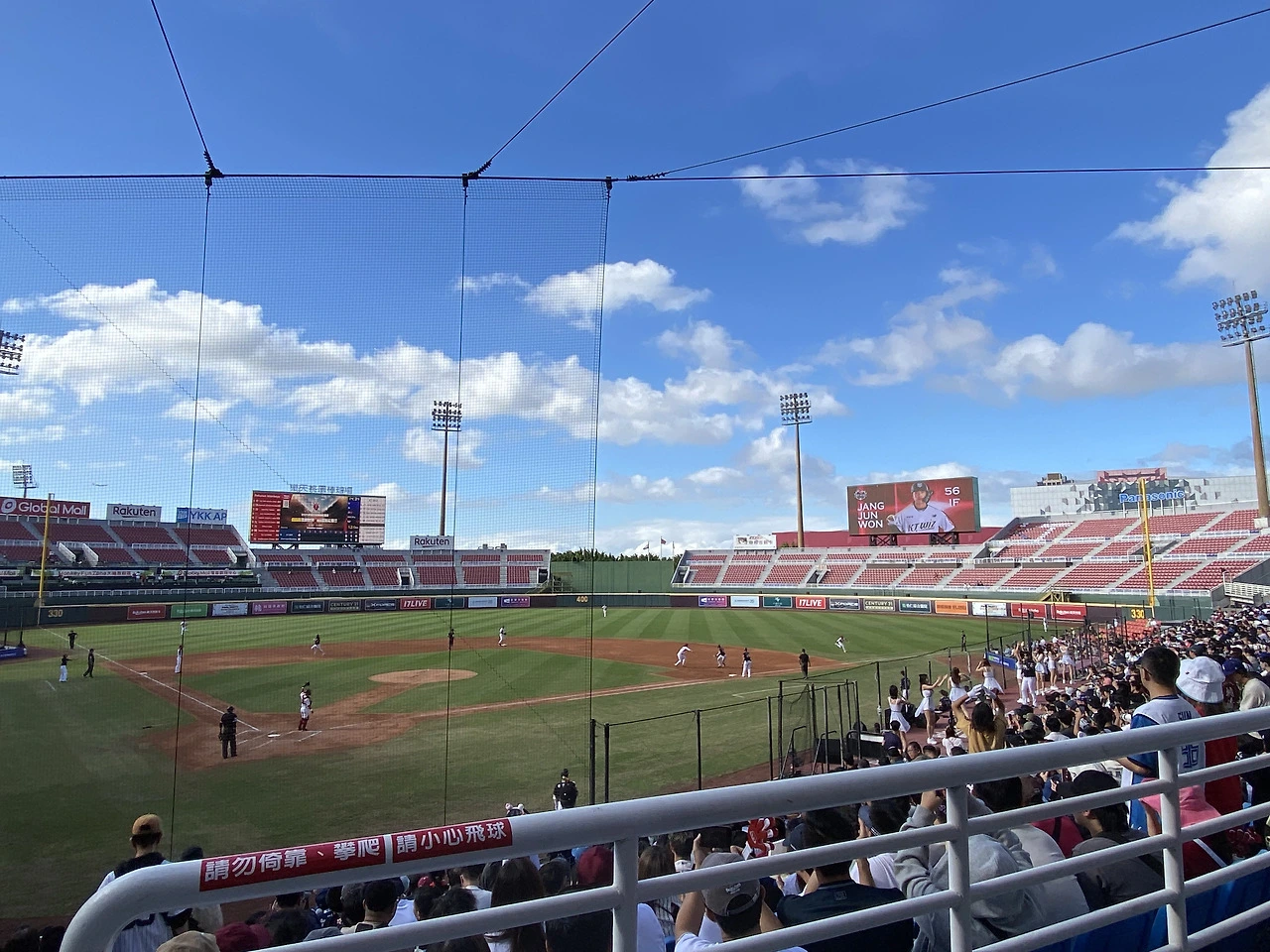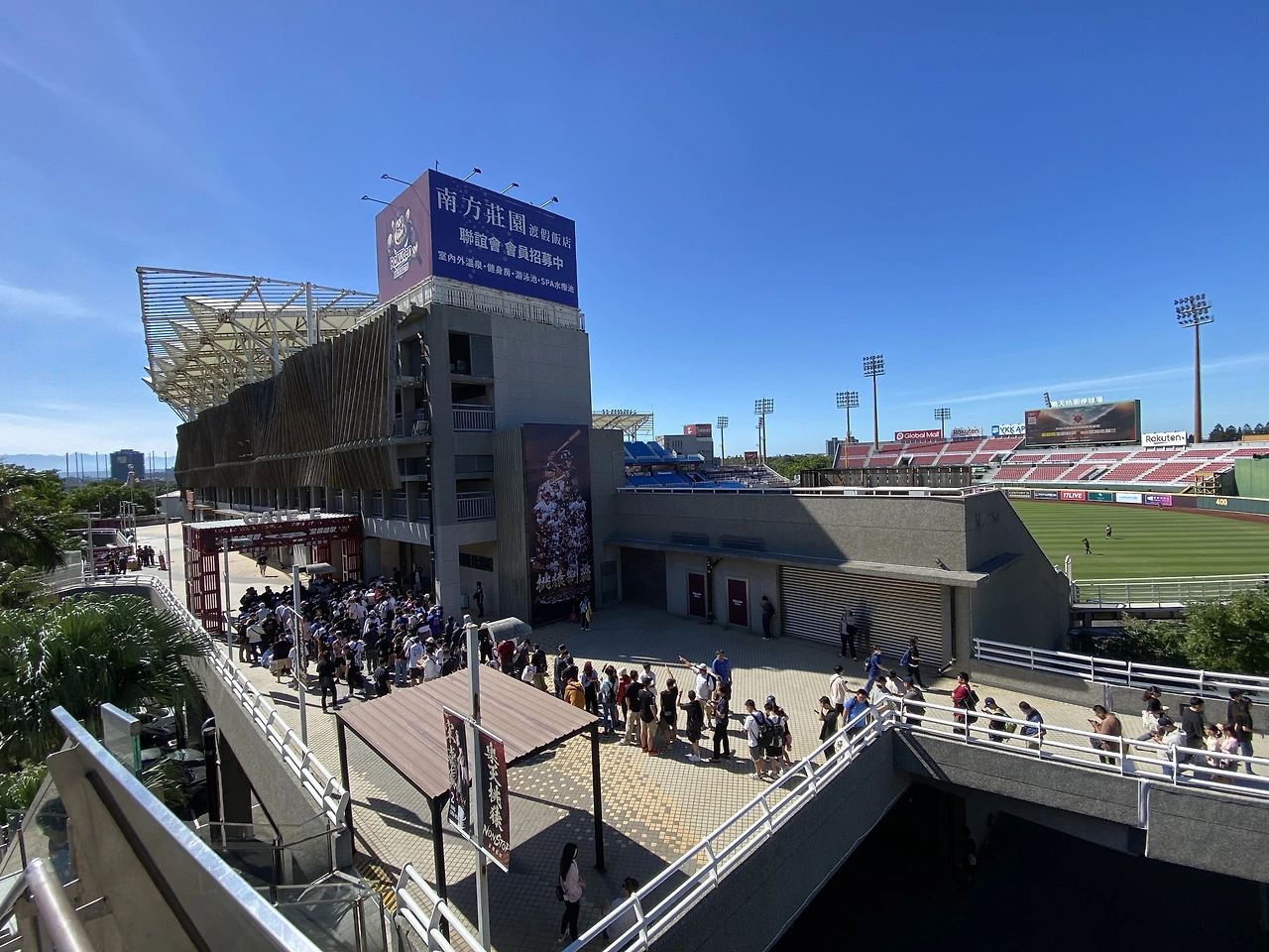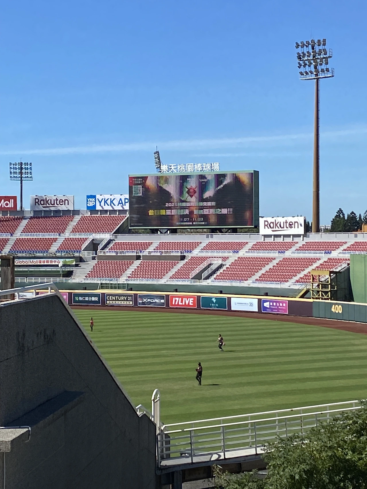 반가운 재회를 마치고 두 번째 날, 드디어 본 목적인 야구장으로 향했습니다. 타이베이역에서 우리나라 KTX 같은 HST를 타고 타오위안역으로 향했습니다. 인천국제공항 같은 대만의 대표적인 국제선공항이 있는 그 타오위안 맞습니다. 거기에서 한 번 더 전철로 환승해서 도착한 타오위안 야구장. 역에서 나오면 바로 연결된 쇼핑몰을 지나 금방 보입니다. 야구에 관심이 있는 분이라면 한 번쯤은 들어보신 적이 있을 것 같습니다. 전신은 라밍고 몽키즈라는 팀이었고, 2020년에 일본의 이커머스 대표기업인 라쿠텐 그룹이 인수해 라쿠텐 몽키즈라는 팀 이름으로 바뀌었습니다. 그리고 라쿠텐은 대만뿐만 아니라 일본의 프로야구구단도 운영하고 있고요. 한국과 일본에 프로야구구단을 운영하고 있는 롯데와 비슷하다고 생각하시면 될 것 같습니다. 한국에는 처음으로 대만으로 진출한 이다혜 치어리더의 첫 소속팀으로 알려져 있을지도 모르겠습니다. 아무래도 모기업이 일본기업이다 보니 일본의 구단과도 교류활동을 활발하게 하고 있고 대만 내에 일본기업이 많이 진출해 있어서 일본기업의 스폰서도 많아 다양한 이벤트가 많이 열린다고 들었습니다.
