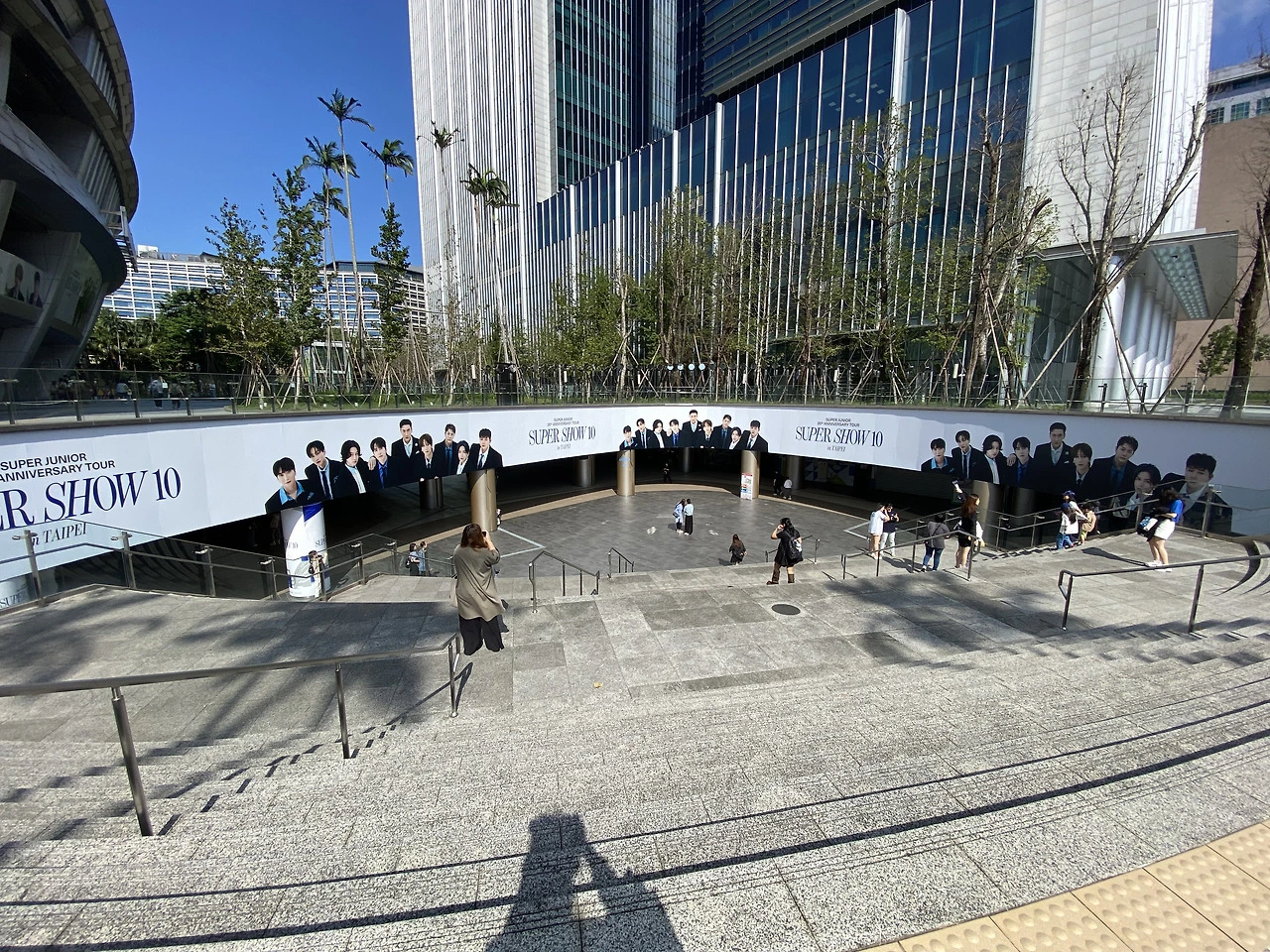 타이베이는 2주 동안 장마처럼 거의 내내 비가 왔었다고 했는데 다행히 제가 머물던 동안에는 26도까지 기온이 올라갈 만큼 날씨가 맑고 따뜻함을 넘어 더움을 느낄 정도였습니다. 늦잠을 자고 자료 번역을 도와준 대만 연구실 후배를 만나 오랜만에 근황토크를 했는데 그 사이에 후배는 세븐틴의 팬, 캐럿이 되어있더라고요. 이 친구를 만난 타이베이 돔 근처에는 케이팝 대표그룹인 슈퍼주니어의 대만공연을 앞두고 반가운 얼굴들이 여기저기에 걸려있었습니다. 케이팝러버(나)가 홍보하지 않아도 이렇게나 케이팝을 사랑하는 외국의 팬들이 많다니...! 외국에 살면 그 고마움과 뿌듯함이 배로 느껴지는 것 같습니다.