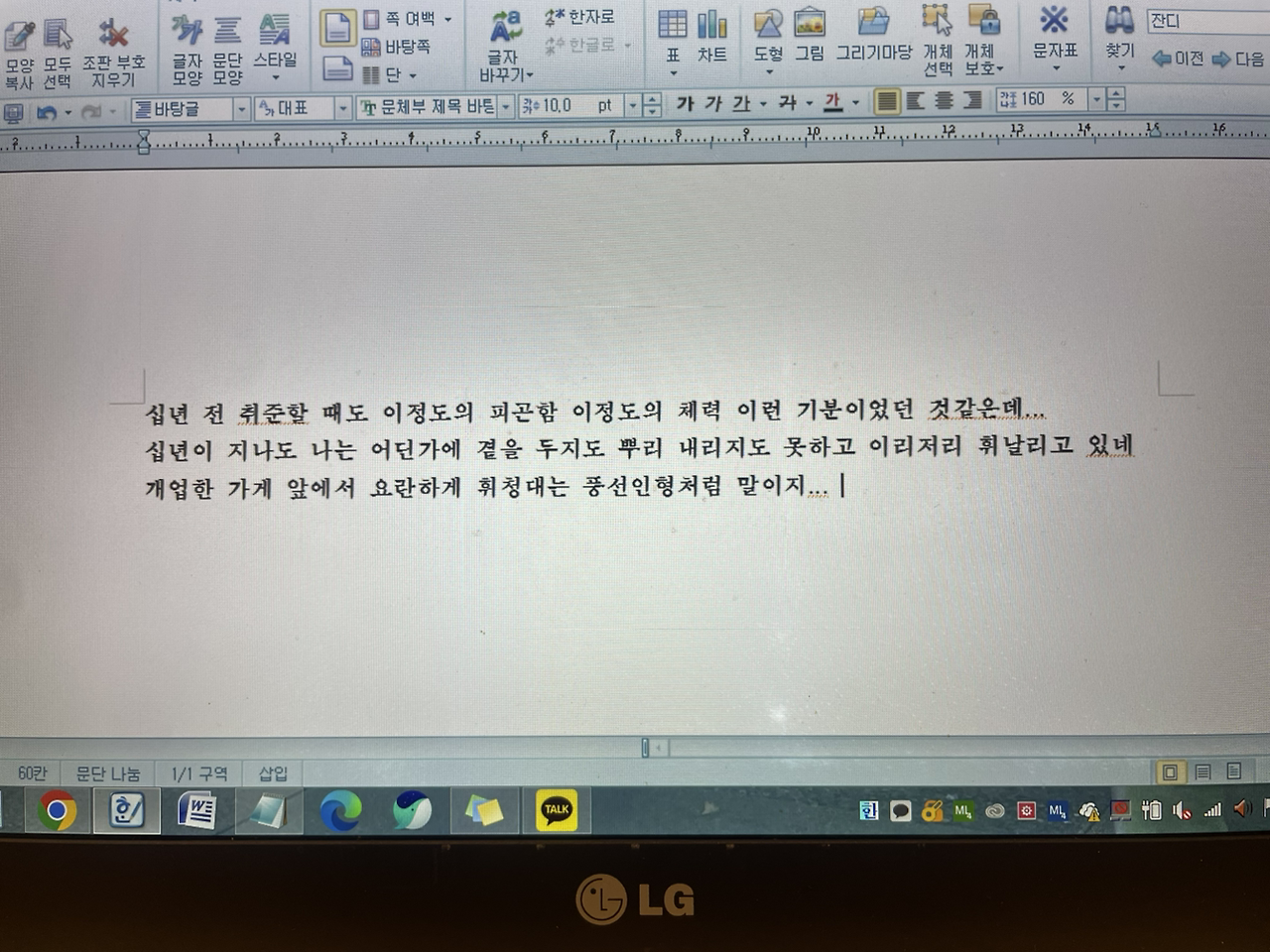 쓰고 바로 지울 생각으로 타닥타닥 키보드를 쳤는데