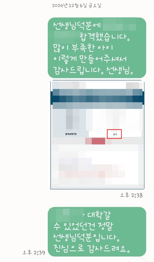 바로 그 저력이 이번에 대학합격을 만들어냈습니다.