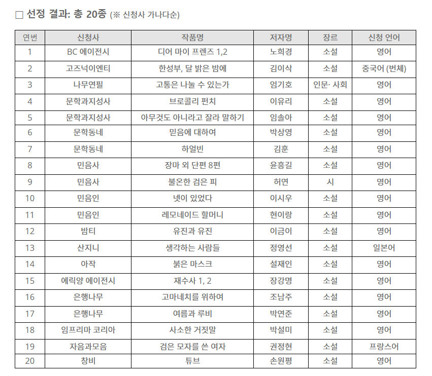 1. 한국문학번역원 완역원고 지원 사업 선정