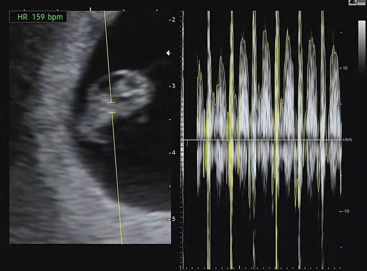 초음파 기계가 조심스럽게 초점을 맞췄고
