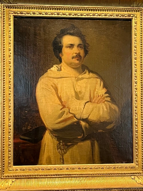 로뎅은 풀 사이즈 석고 조각상을 제작했는데, 로뎅이 사망하고 22년 뒤에 청동으로 주조됐습니다. 투르 미술관에 전시된 작품은 12개 원본 중 하나라고 적혀있네요. 조각상은 좀 기괴합니다. 온몸을 망토로 감싸고 있으며 짧은 목과 헝클어진 머리, 넓고 단단한 상체가 특징적입니다. 조각상 옆에 걸린 그의 초상화를 보면 로뎅의 조각상은 발자크의 실제 모습과 많이 달라 보입니다.