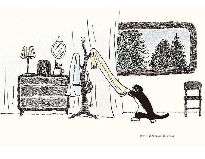 고양이는 모두의 친구인가 봐. 사람들은 고양이를 정말 좋아하는 것 같아. 고양이가 털양말을 신은 것 같은 네 발로 사뿐사뿐 다가오면, 부드럽게 꼬리를 흔들며 다가오면, 누구도 거부하지 못해. 황홀한 눈으로 고양이를 홀린 듯 쳐다보게 돼. 참 이상도 하지. 고양이한테는 마법의 힘이 있나 봐. 그래서 작가들은 고양이에 관한 그림책을 그리고 또 그리나 봐. 고양이를 찬탄하지 않을 수 없다는 듯이. <모 이야기>의 고양이도 말할 수 없이 사랑스러워!