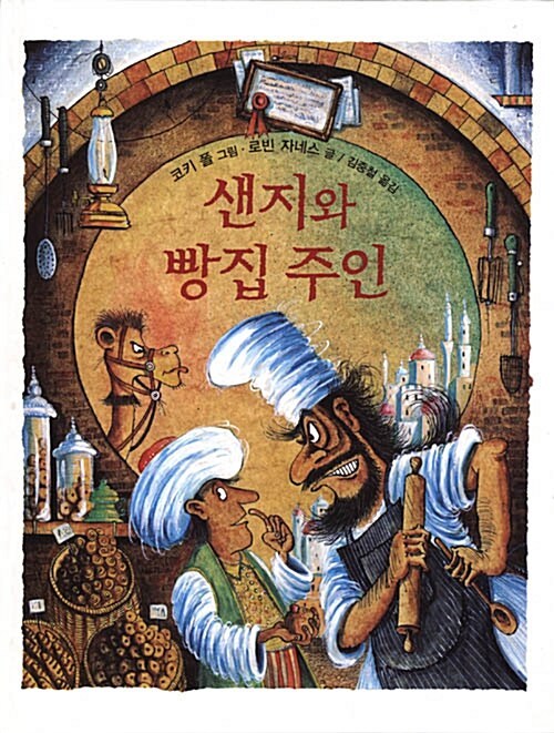 표지 그림을 보니 주인공과 악당의 대결이겠네. 밀대와 나무 숟가락을 들고 있는 사람이 아마도 빵집 주인일 테고 샌지는 악당한테 당하는 모양인 걸. 표지 왼쪽에서 세모꼴 눈을 한 낙타가 빵집 주인을 째려보고 있어. 그러니까 배경은 사막의 나라 어딘가란 뜻이겠지. 표지만 봐도 이야기가 어떻게 돌아갈지 알겠다. 악당이 약자를 괴롭히다가 결국 혼이 난다는 뻔한 이야기일 거야. 하지만 결말이 분명해도 우리는 재미나게 이야기를 읽을 수 있지. 왜냐면 이야기의 묘미는 바로 '어떻게'에 있기 때문이야.