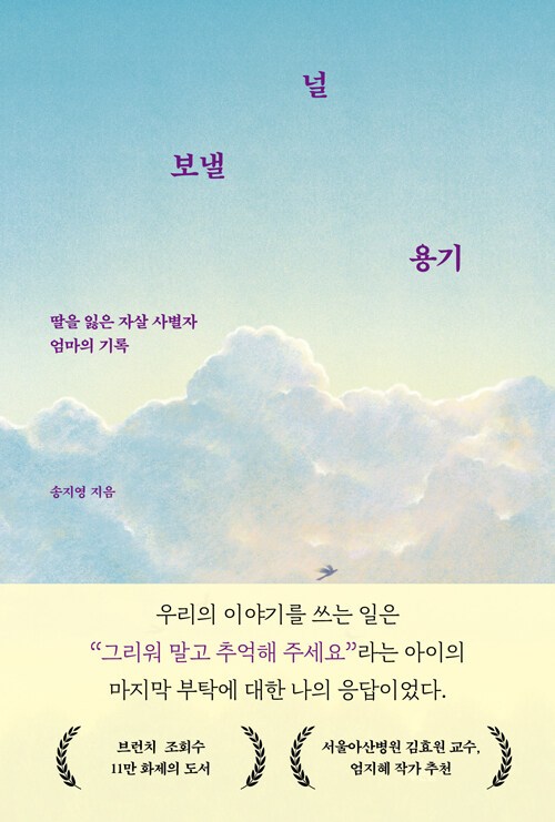 <널 보낼 용기>에서 작가님은 열일곱 살 딸을 잃은 슬픔만 얘기하지 않는다. 아이가 앓았던 양극성장애 2형(일반적으로 우리가 막연히 조울증으로 부르는 질병)의 증상, 발병을 자극하고 악화시키는 교육제도의 문제, 사회의 총체적 몰이해를 지적한다. 그리고 작별하고 슬퍼하는 남은 이들이 계속 행복하게 살아갈 수 있음을 보여준다. 떠난 이를 위해서 우리는 그렇게 살아야 한다고.