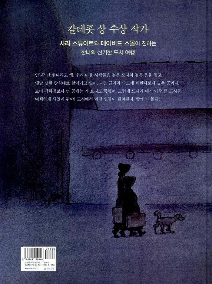 책 표지는 새벽 풍경이다. 마차가 준비됐고 말을 챙기는 아빠가 있다. 노란 기름등이 밝히는 동그란 빛무리 속에 가방을 들고 서 있는 아이의 뒷모습. 아, 아주 이른 아침에 찬 새벽 공기를 마시며 어딘가를 가는구나, 우리는 짐작한다. 푸른 새벽빛, 공기는 촉촉하고 싸늘하다. 여행자는 잠이 덜 깬 눈으로 길을 나선다. 돌아보면 우리 기억 속에는 이런 새벽길의 특별한 느낌과 냄새가 있다. 고생스러워서 다시 잠자리로 기어들어가고 싶지만 억지로 현관 문밖을 나서던 무거운 발걸음의 기억.
