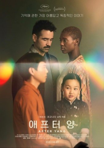 젊은이가 있다. 이름은 양. 그는 한 부부가 입양한 중국인 어린 딸을 돌보는데, 아이에게 중국 문화를 가르치며 중국인으로서의 정체성을 구축하도록 돕는 게 그의 주된 일이다. 아이의 아빠 제이크는 잎차 가게를 운영하는 백인이고 아이의 엄마는 흑인 여성인데 회사의 중견 간부인 듯하다. 부부는 각자 자신의 정체성-차를 사랑하는 사람, 아프리카인-을 지키려고 노력하며 당연히 아이도 중국인으로서의 정체성을 확고히 갖기를 바라서 양을 샀다. 그렇다. 그들은 양을 샀다. 왜냐하면 그들이 사는 시대는 안드로이드 인간이 보편화된 미래 사회이기 때문이다. 양은 돌봄과 문화에 특화된 테크노로서, 중국인으로 프로그래밍된 안드로이드 인간이다. 영화 초반에서 양은 과부하가 걸려 작동이 정지된다. 영화는 존재하기를 그친 양의 이전 시간을 추적하는 이야기다.
