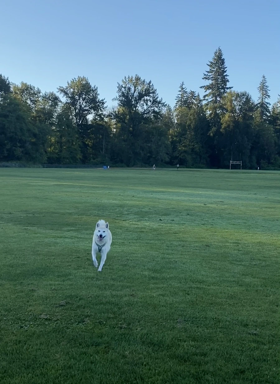 집 근처에 각각 다른 방향으로 세 군데에 넓은 잔디밭이 있는데 이곳저곳 재다가 그중 가장 작고 조용한 곳으로 정해서 아침마다 걷는다. 집에서 나와 15분 정도 걸으면 도착하고 8시까진 거의 아무도 없다. 8시쯤엔 크리스마스 때 선물로 받은 강아지라 이름이 '홀리'라는 멋지고 빠른 보더콜리 한 마리와 아직 통성명을 못한 홀리의 친구가 온다. 잔디밭이 넓어서 서로 방해는 안되지만 그래도 나는 8시 전에 떠나려고 시계를 확인한다.