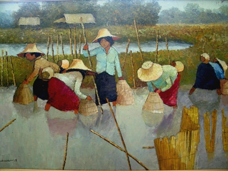 장소와 화가의 이름은 잊었는데 여행에서 돌아온 손님이 가져왔던 그림. 동남아시아 쪽 어디였던 것 같다. 어딘가 서툰 듯하면서도 자꾸 마음이 가는 그림이어서 우린 서로의 의견에 맞장구를 치며 꽤 오래 이야기를 나눴다. 왜 좋은지 정확하게 말하긴 힘든데 그냥 참 좋다는 내 말에 그는 자기도 딱 그 마음이었다며 즐거워했었다.