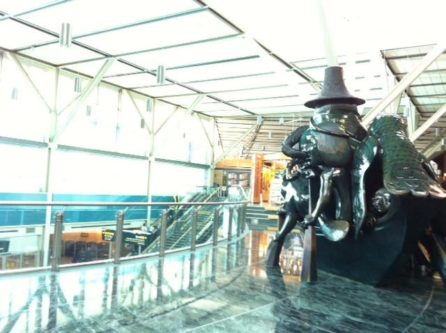 ‘하이다 과이의 영혼:옥빛 카누(The Spirit of Haida Gwakk: the jade canoe)’란 제목의 ‘빌 리드(Bill Reid)’의 작품이다. 원본은 퀘벡의 ‘역사박물관’에 석고 형태로 보관되어 있고, 이곳에 있는 건 두 번째 주물이다.
