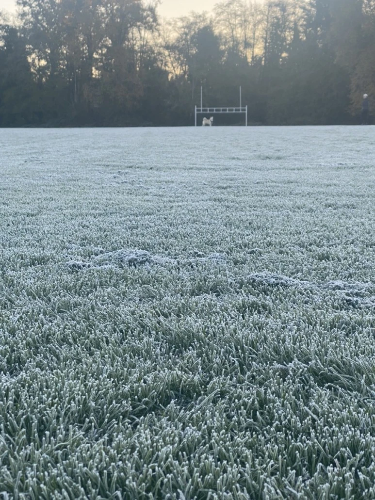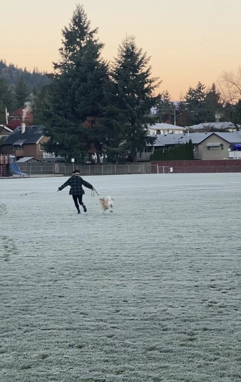 우리에겐 좀 당황스러운 추위지만 헌터는 아주 좋아하는 날씨지요. 서리가 내려서 잔디밭 위에 쌀가루를 뿌려놓은 것 같거든요. 물기 먹었던 땅이 얼어서 딱딱하게 결이 잡혀있습니다.. 여름에 스프링클러가 적셔놓은 잔디밭엔 절대로 들어가지 않으면서도 서리가 내린 잔디밭은 좋아합니다. 개공원에서 실컷 뛰어놓고, 친구들도 많이 만난 즐거운 아침이었어요.