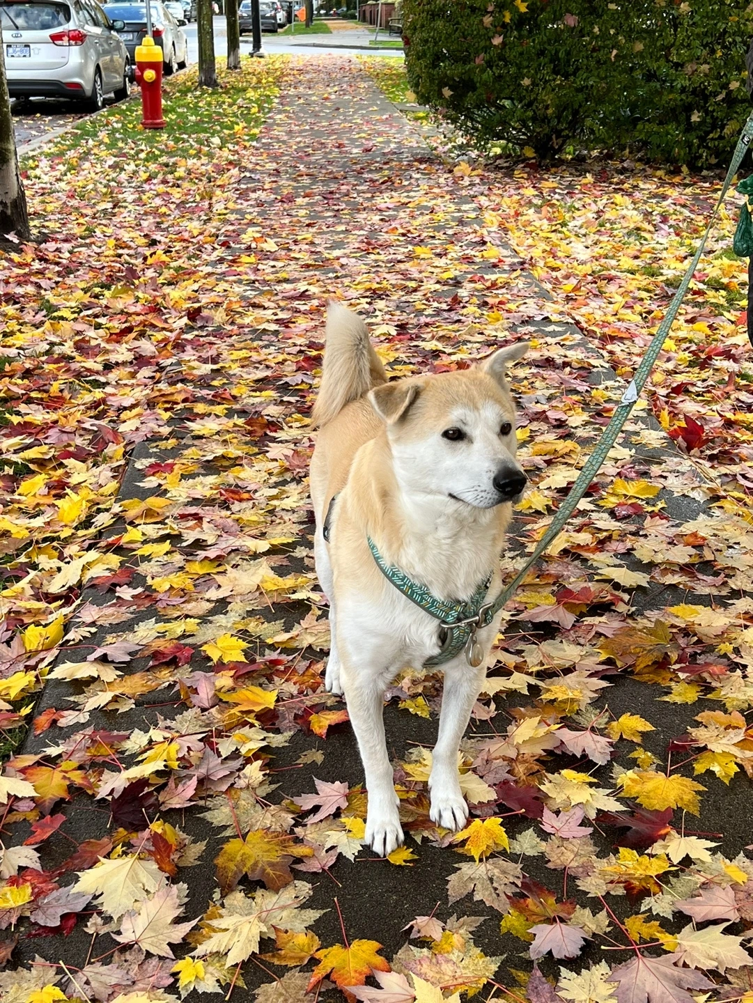 다행히 오늘 아침엔 기온이 다시 정상으로 돌아왔습니다. 맑은 날은 춥고, 비 오는 날엔 오히려 기온이 올라가는 이곳의 날씨답게 내일부터 내내 비소식이네요. 금세 또 가을 지나고 겨울 되겠지요. 비만 오지 않는다면 지금부터 헌터가 좋아하는 날씨인데, 세상에 다 좋은 건 없나 봐요. 하지만 단풍은 여전히 곱고 이른 아침의 쌀쌀하고 청량한 공기가 사랑스러운 날들입니다. 이럴 땐 헌터의 걸음이 가볍게 통통 튑니다. 보드라운 귀도 팔랑거리고. 병원 갔을 땐, 간호사분들이 벨벳 같다며 자꾸 만져보고 싶어 했는데 엊그제 지나가던 어떤 꼬마가 나비 같다고 했어요. 순한 성품이 드러나 선지 헌터는 낯선 사람들에게도 예쁨 받으며 잘 지내고 있습니다.